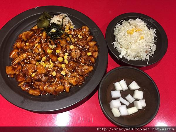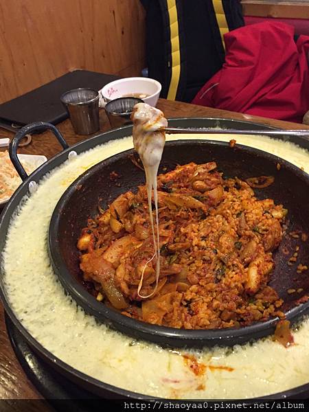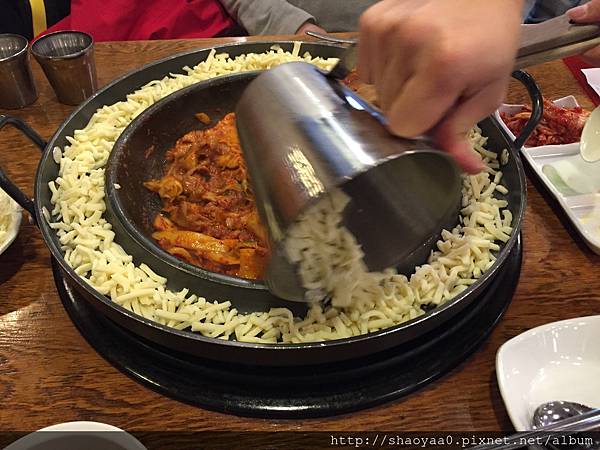 點了雙人份量的辣炒雞排和起司,待伴炒的桌邊服務差不多的時候,服務生會放上起司,就可開始享用。