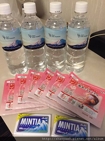 要特別稱讚房間的加濕機,在這2度c的氣溫中,適必是要打開溫暖的暖機,這時加濕機變的無敵重要,真的好好用、好保濕啊!我愛…!後幾天住的東橫INN,加濕機功能就沒這麼好,機器開到隔天早上,會發現放在床下的行李箱都是水氣,VILLA FONTAINE這完全沒這困擾。透過官網訂購,入住時一人可以選擇一樣小禮物,贈品共有八種:拖鞋、礦泉水、蒸氣眼罩、報紙等,驚喜小禮物的概念。