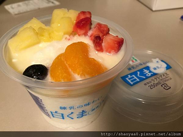 「大白熊水果練乳冰」~ 舖在滿滿的練乳小碎冰上的是新鮮水果、新鮮水果、新鮮水果,很利害所以要說三遍!有鳳梨、草莓、橘子和葡萄,凍過的水果搭配下面的練乳別有一番滋味,是戀愛的感覺。(現在台灣好像也有販售了!)