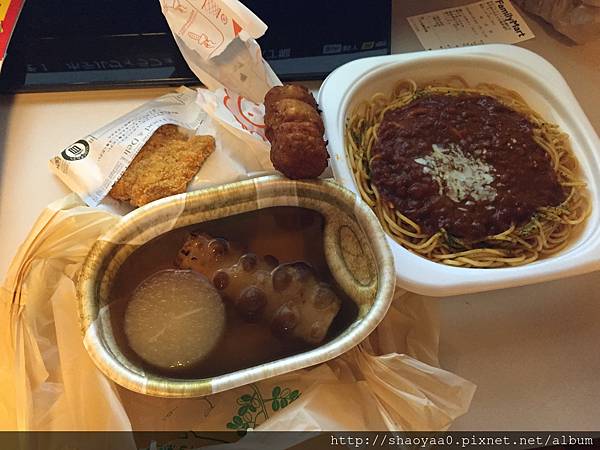 全家掃到的宵夜全都好吃,跟餐廳一樣豐盛,完全能滿足我這吃貨的胃。右邊是「蕃茄義大利麵」,千萬不要小看微波食品,麵條依然保持Q彈,醬汁很夠味,還附上一小包起司粉!「關東煮」也有多樣選擇,蘿蔔夠味又不爛,像章魚腳的東西,吃起來是魚漿類的甜不辣,口感也很不錯,湯頭的柴魚味讓它更加分,啵棒!
