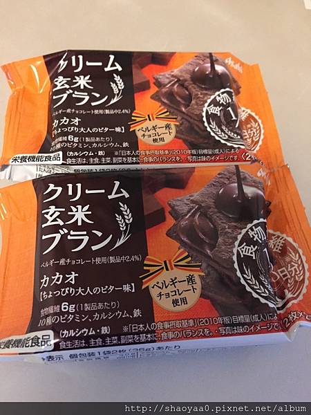 「巧克力玄米餅」~ 有豐富膳食纖維,還有牛奶口味可選擇。記得在美國遊學期間,日本室友請我吃一塊也是玄米類的纖維餅,吃過以後就心心念念著它的滋味,這味道和型狀和當年吃的好像。一樣好吃,餅乾有一顆顆的口感,中間的巧克力很滑順香濃。不知道我吃的是當年的記憶…還是什麼!呵
