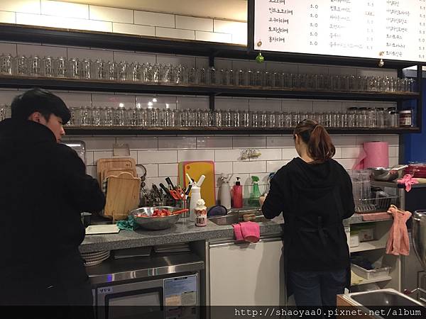 店門面看起來不是太顯眼,很可能一不小心沒注意它就會錯過了。店面空間不大,二樓也有座位喔。來店消費的族群以當地的年輕學生、情侶等。可能因為不是主打做遊客生意的,所以菜單上的品項沒有英文說明,Only Korean No English啦!