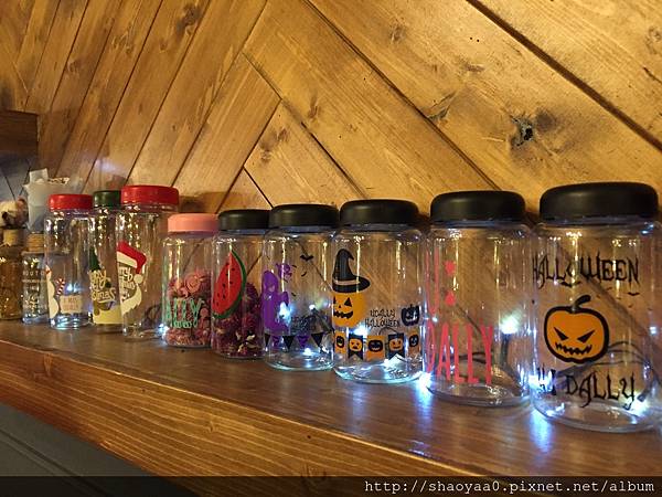 牆上放了一系列的造型罐,因應不同的時節會有不同的圖案。