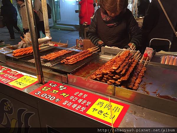 巨無霸雞肉串,一串3000韓圜,肉質口感軟嫩,醬汁的口味是偏甜的那種。