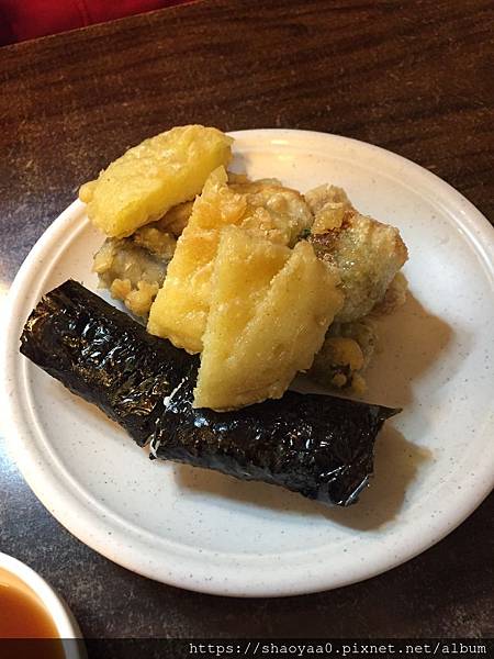 在關東煮區選了年糕串、魚板串、黑輪串,另外點了一份炸物,還有阿珠嬤現包的鮪魚壽司捲。