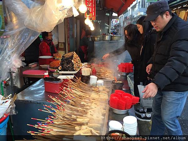 打算從札嘎其搭上前往甘川洞的小巴,札嘎其站3號出口的人行道區,有一排早早就營業的小食攤喔!