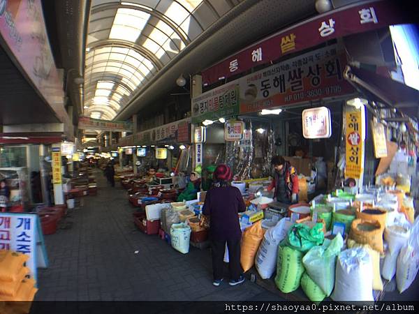 退房後把行李借寄安頓好,就步行到飯店旁邊的釜田市場晃晃,帶著挖寶的好奇鑽進了這好大的傳統市場。