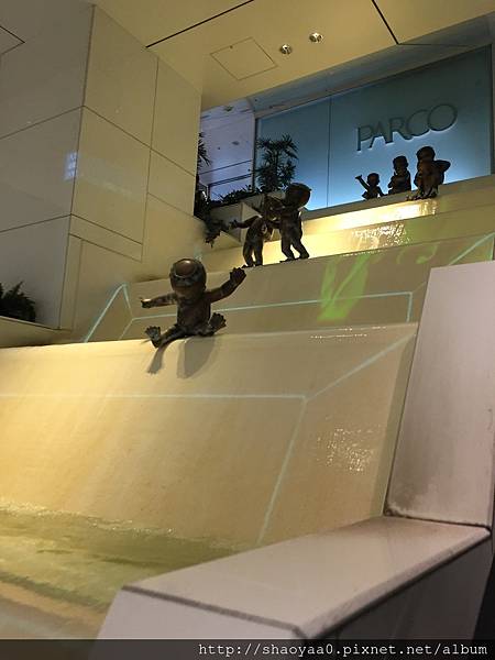從剛剛的蒸氣乳霜繼續往前走,看到這個小童玩水的裝置,就是Parco百貨了!
